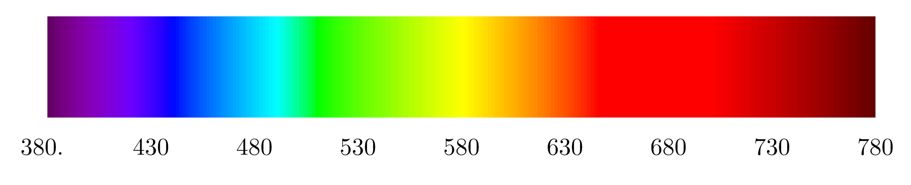 نور میگویند. این طیف در تصویر زیر همراه با نمایش رنگی متناظر با دریافت و تعبیر فیزیولوژیکی چشم و مغز انسان دیده میشود.
